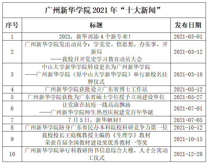 经专家评审及网络评选,评选出了十条全面展示学校发展、教育教学改革、党史学习教育及同心抗疫成果的新闻事件,现予以公布。