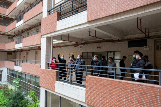 王庭槐校长一行就学生学习生活的重点区域的疫情防控、消防、安保等情况进行校园安全检查,全面筑牢校园安全防线,为教育教学有序开展提供安全保障,为师生共同营造安全、稳定、和谐的校园环境。