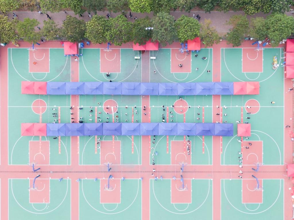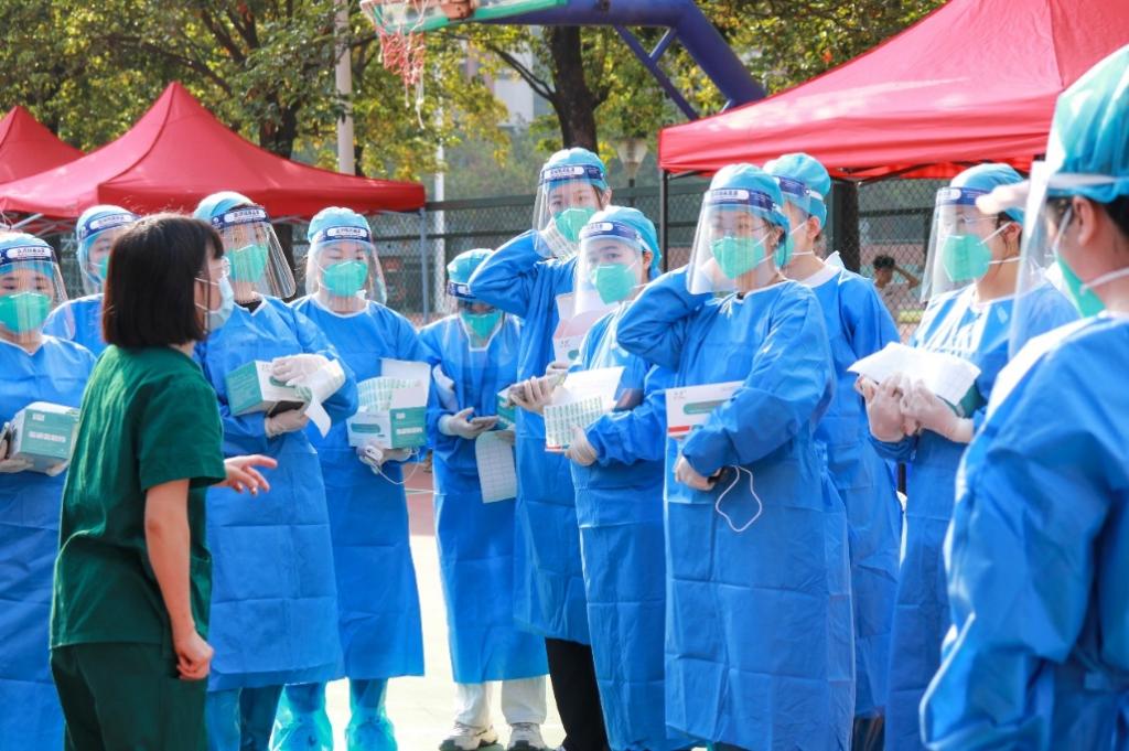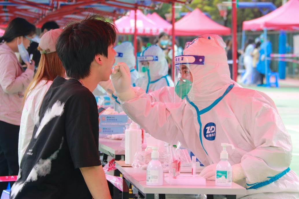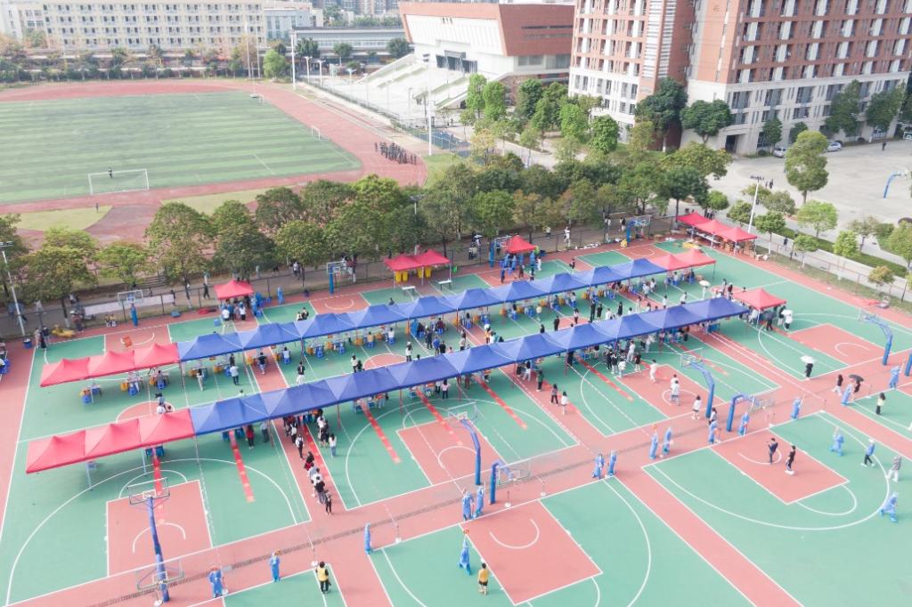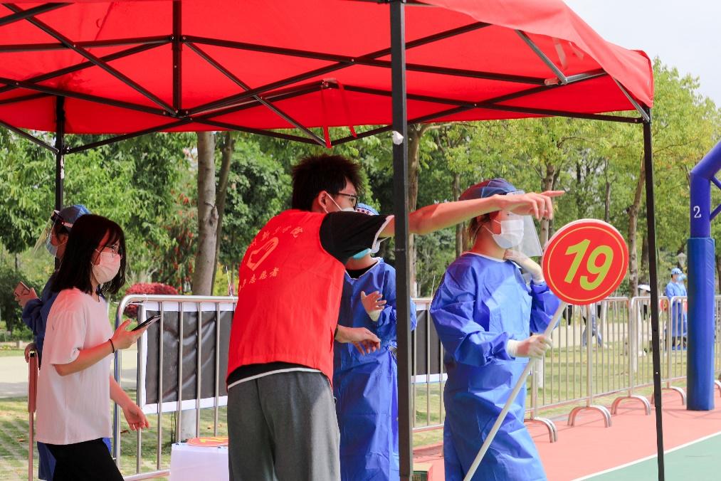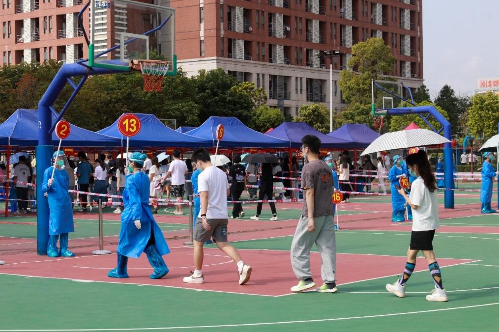核酸采样现场秩序井然,师生保持安全距离