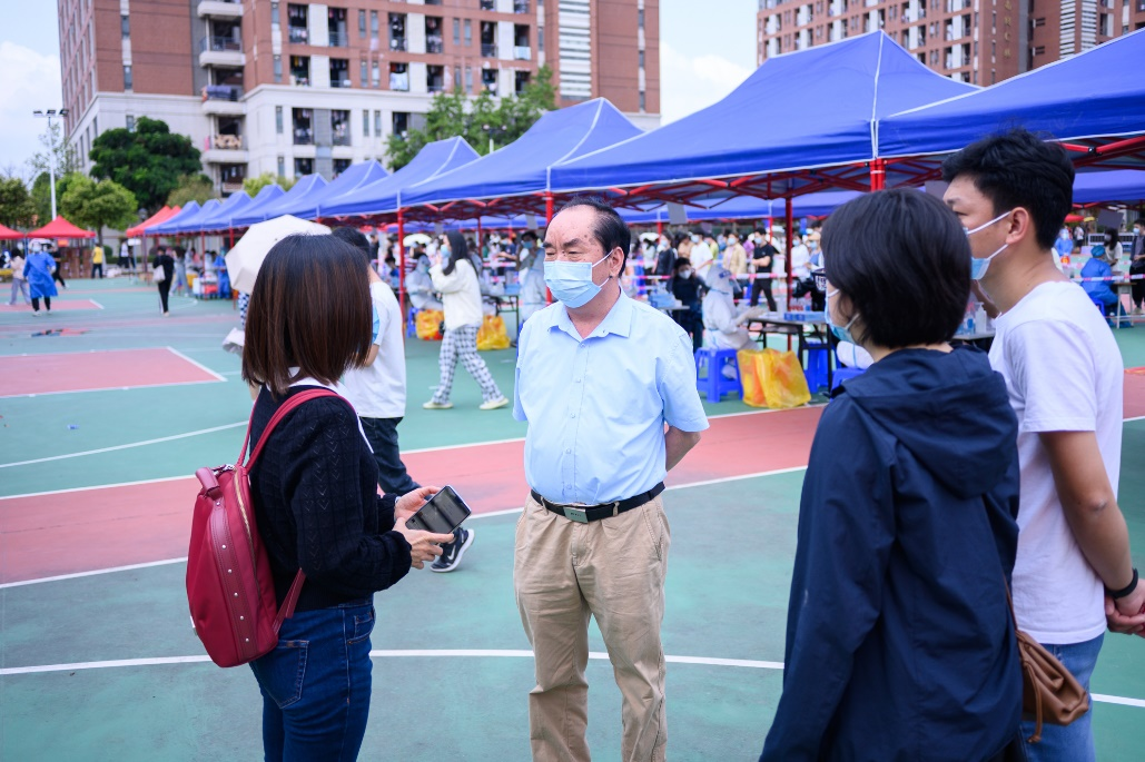古天乐代言太阳集团网址党委副书记、副校长蓝永金在核酸采样现场指导工作