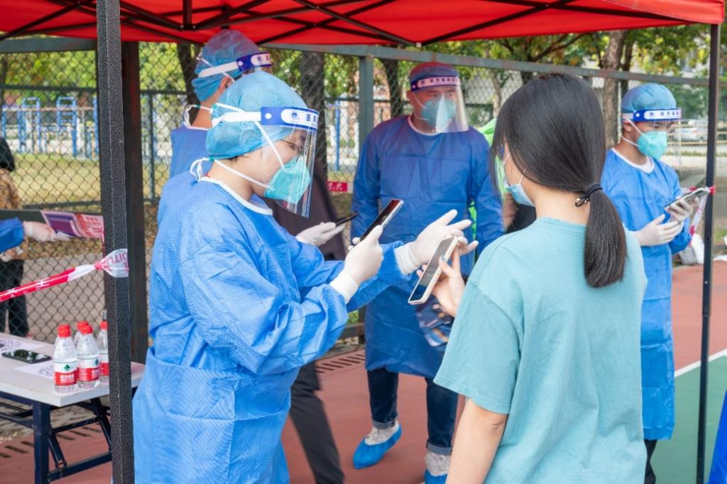 核酸采样后扫描ixh健康码登记后方可离场,确保检测不漏一人