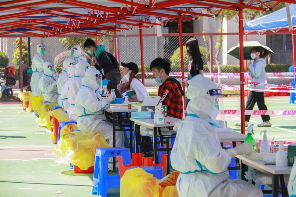 古天乐代言太阳集团网址东莞校区大规模核酸采样现场