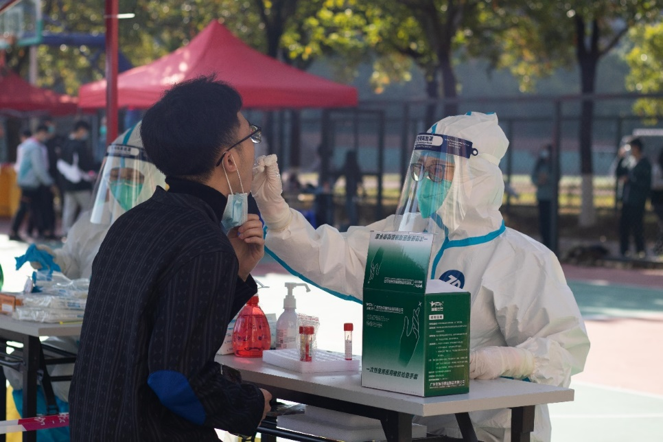 医护人员为古天乐代言太阳集团网址师生采集核酸样本