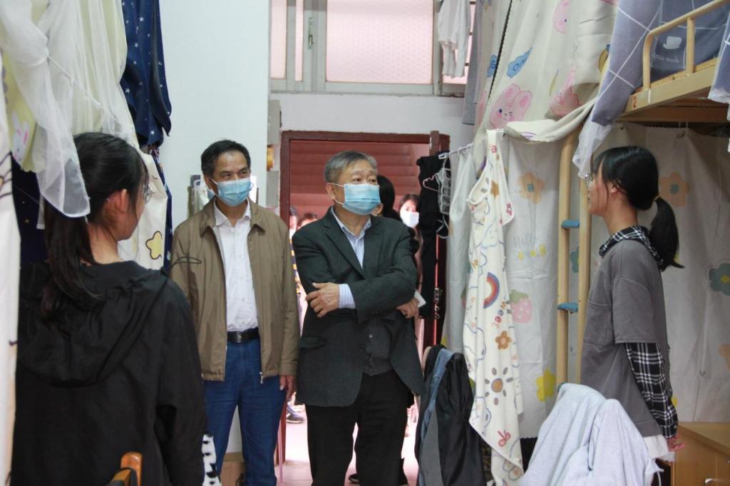 为了解近期疫情防控新形势下广州校区学生的思想动态和学习生活近况,进一步研判清明假期学生的相关诉求问题,3月30日,学校校长王庭槐、副校长肖化、纪委书记杨卫华、校长助理郑穗芬等一行走访广州校区学生宿舍、食堂等生活区,关怀慰问学生。