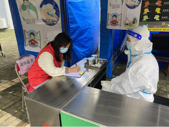 医护人员对学生进行测温及信息登记