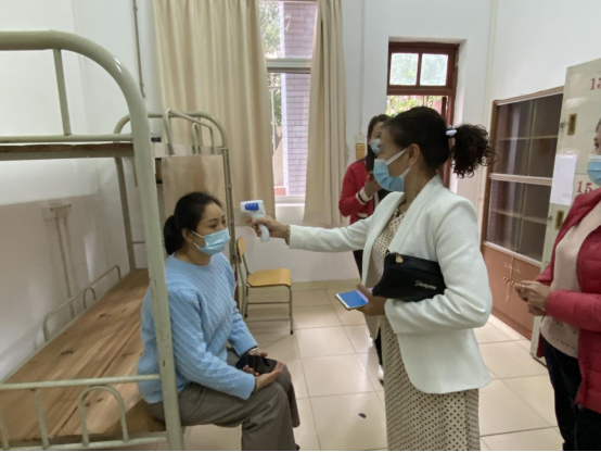 宿管人员为发热学生测温并马上电话联络校医