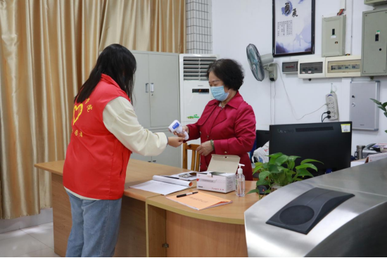 图书馆工作人员为发热学生进行测温并电话联络校医