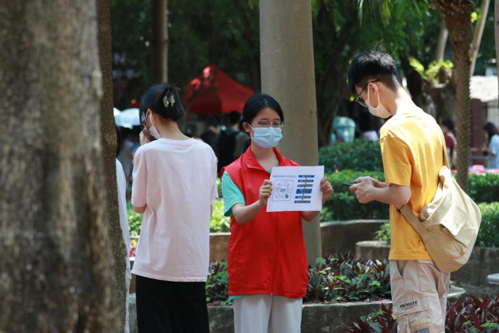 在现场工作人员们的指引下,接受核酸检测的师生们井然有序地排队等待核酸检测。在登记“粤核酸”码后师生有序进入采样区,由医护人员进行核酸采样,医护人员一丝不苟地做好每一样工作,洗手、拆核酸检测棉签、咽喉拭子取样,现场高效有序。核酸检测结束后,志愿者们对所有采样人员进行ixh健康码检测,确保学校全员核酸检测不漏一人。