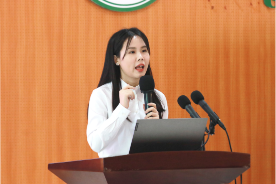 孙思思老师以最近火热的“刘畊宏毽子操”引入“网络直播”的讲解主题,生动形象地从直播团队的组织架构、组建细节、主播人设打造及选择主播的攻略、助播的职责与作用四方面进行讲解。她引用张桂梅老师的先进事迹,表示作为新时代的教师,要用自身的经历去教育孩子们的自立自强、自尊自信,要吸取每一位前辈留给我们的宝贵经验,不断提升自我。