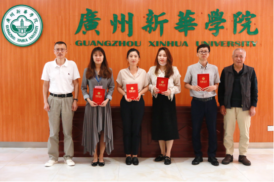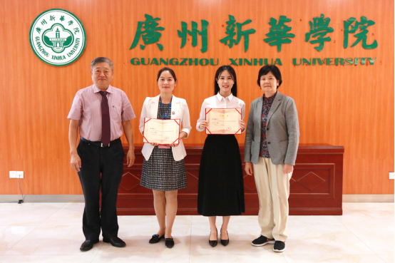 肖化副校长(左一)、陈玉川督导(右一)为二等奖获奖教师颁发荣誉证书