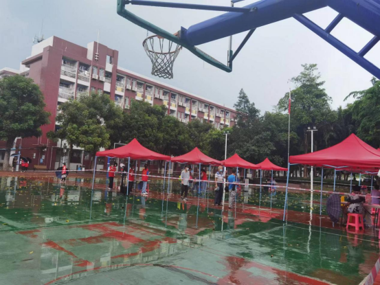 核酸检测工作人员在雨中坚守,志愿者们积极引导,全校师生有序排队,秩序井然。此次核酸检测工作安全、高效、有序。全校师生和医护工作者默契配合,认真热情,坚定了全体师生群防群控、打赢疫情防控阻击战的信心,共同守护平安校园。