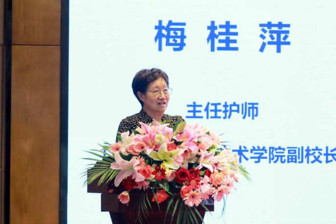 广州华夏职业技术学院副校长梅桂萍发表致辞,围绕“祝贺”“感谢”“祝愿”这三个关键词作出总结,衷心祝贺广东省护理学会第九届理事会产业发展工作委员会正式成立。同时,她感谢主委单位对护理产业委员会的大力支持和帮助以及往届广东省护理委员会护理产业委员为护理产业的发展奠定的基石,祝愿护理产业在全体护理人的共同探索中不断前行和发展。