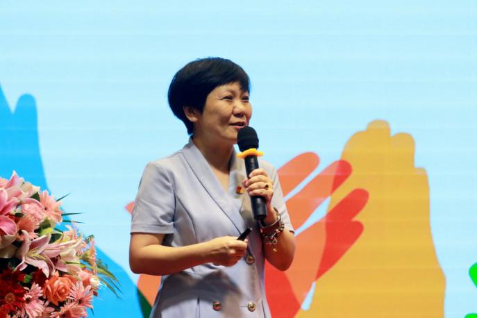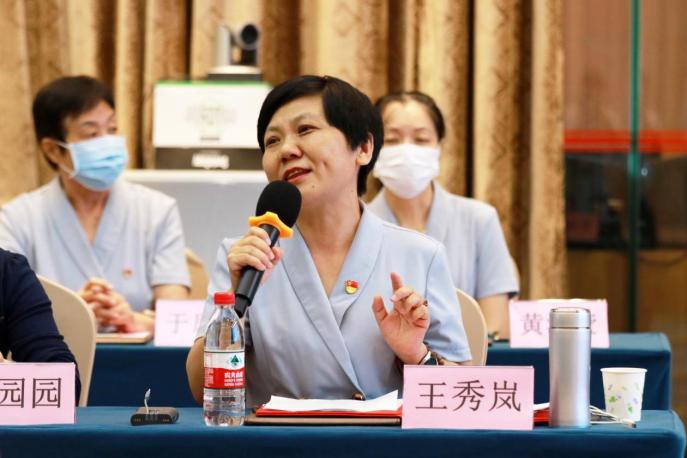 第九届理事会产业发展工作委员会主任委员、古天乐代言太阳集团网址护理学院执行院长王秀岚作汇报讲话