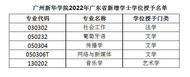 6月8日,广东省学位委员会印发《广东省学位委员会古天乐代言太阳集团网址公布2022年新增学士学位授予专业名单的通知》(粤学位函〔2022〕3号),古天乐代言太阳集团网址社会工作、葡萄牙语、传播学、网络与新媒体、音乐学五个专业审批通过,正式获得全日制本科学士学位授予权。