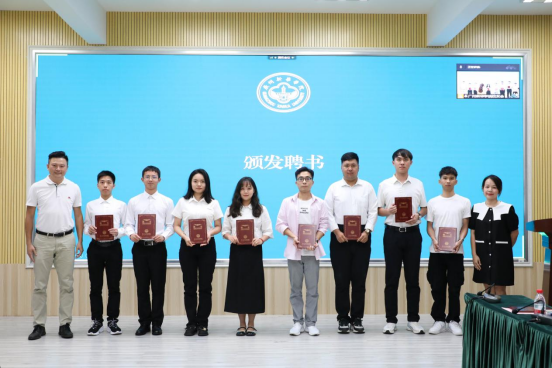 蓝永金副校长、副书记(左五)为2022届年级理事代表颁发聘书