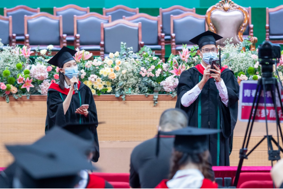 此时此刻我十分感动,这一次告别后,或许我们下一次见面就会是很久以后的事情了。很感谢学校在做好疫情防控工作的前提下,尽全力为我们举办了一场最好的毕业典礼。同时我想谢谢外国语学院每一位教导过我们的老师,他们尽职尽责地传授我们专业知识,并如朋友一般地向我们分享他们的日常生活及学习经验。