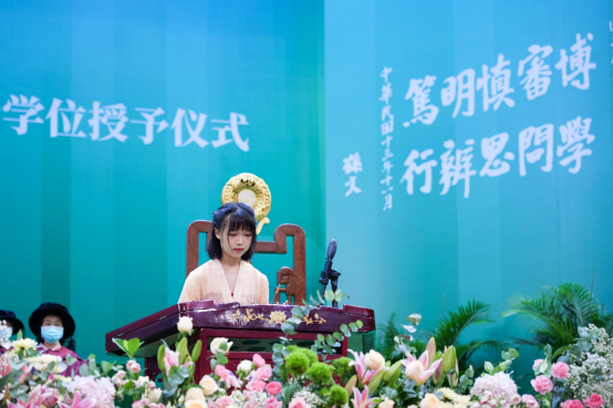 很荣幸能够作为志愿者参与到本次仪式当中,现场氛围温馨融洽又振奋人心,在与师兄师姐们的沟通中我感受到他们对我们工作的大力支特,也能感受到他们对本次学士学位授子仪式的期待。在此,我想对即将毕业的师兄师姐们说:祝你们毕业快乐,希望你们能够继续奔走在自己的热爱里,绽放出属于自己的光芒!看到今天穿着学士服自信从容的师兄师姐们,我也希望三年后的自己经过学习的沉淀,能够像师兄师姐们一样学有所成,在自己的专业领域大放异彩,在不断精进中成就更好的自己。