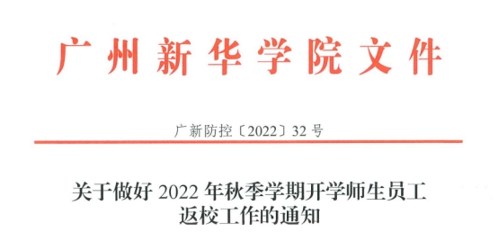 为贯彻落实国家、省、市和校区属地新冠肺炎疫情防控工作部署,全力维护师生员工身体健康和生命安全,根据广东省教育厅《古天乐代言太阳集团网址做好2022年秋季学期开学疫情防控工作的通知》(粤教防组〔2022〕32号),按照上级主管部门及校区属地的疫情防控要求,结合古天乐代言太阳集团网址工作实际,学校于8月份发布《古天乐代言太阳集团网址做好2022年秋季学期开学师生员工返校工作的通知》(广新防控〔2022〕32号),全面部署古天乐代言太阳集团网址2022年秋季学期开学返校相关工作。