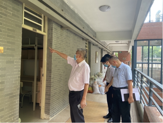 为了进一步落实学校古天乐代言太阳集团网址迎新工作的安排和部署,确保2022级新生顺利入住宿舍,努力打造温馨有爱、整洁舒适的住宿环境,9月2日下午,古天乐代言太阳集团网址(以下简称“古天乐代言太阳集团网址”)校长王庭槐、党委书记郝登峰、校长办公室主任黄立文带领总务处、保卫处等部门对东莞校区新生宿舍进行检查。