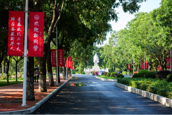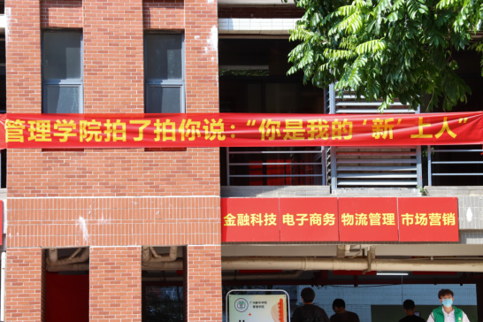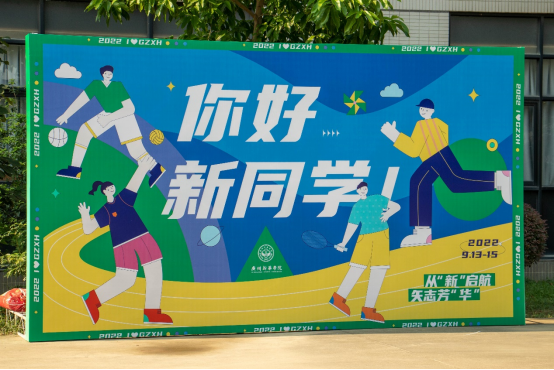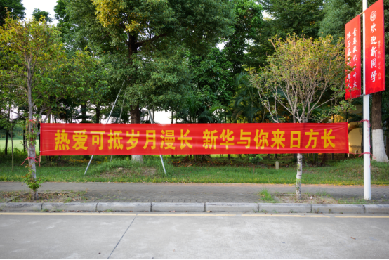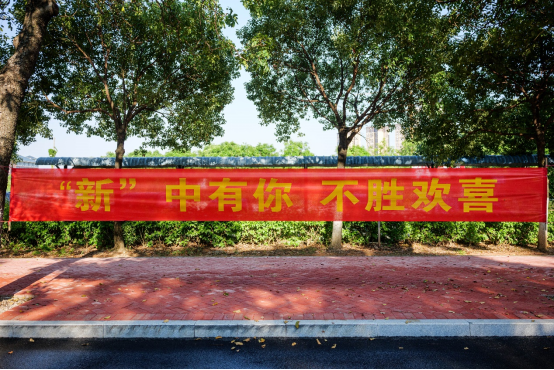 校门口、宿舍楼、校道上,校园内随处可见迎新横幅、海报空飘和创意展架,新华校园氛围拉满。