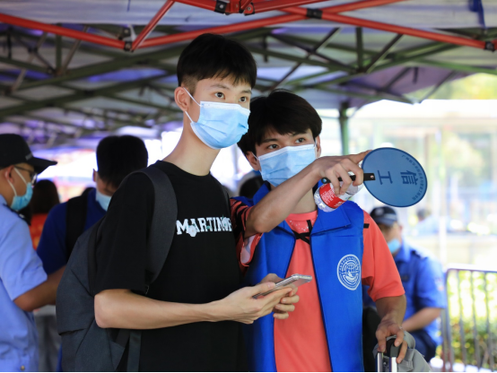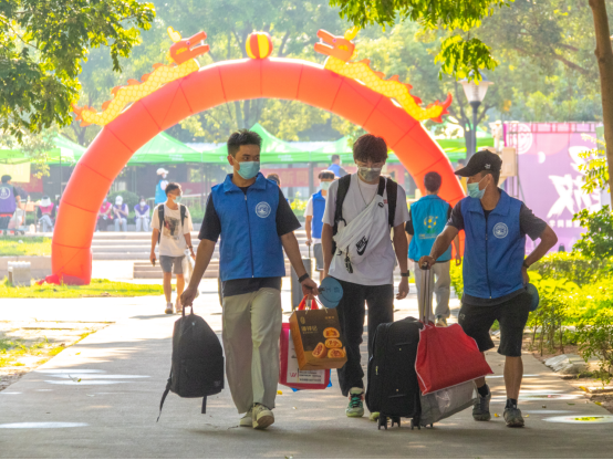 志愿者们耐心地为新生解答各种问题,不辞劳苦地一趟趟帮助新生搬运行李,细心叮嘱各项防疫政策,并一路将各位新生送至宿舍办理入住。热情周到的服务很快消除了新生们初来乍到的陌生感,感受到了广州新华大家庭的温暖。
