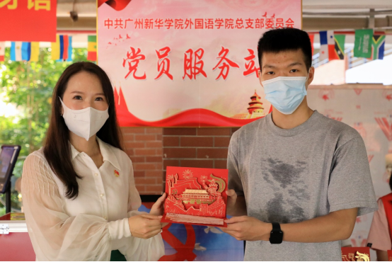 迎新报到点中,外国语学院党总支特设立了党员先锋服务岗,师生党员志愿者为新生介绍入党流程,解答相关疑惑,鼓励新生积极向党组织靠拢。成功递交入党申请的同学收到了一张精美纪念卡,让递交入党申请书更加具有庄重的仪式感。据了解,迎新首日,共有十余名新生在报到第一天就向党组织递交了入党申请书。