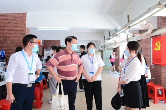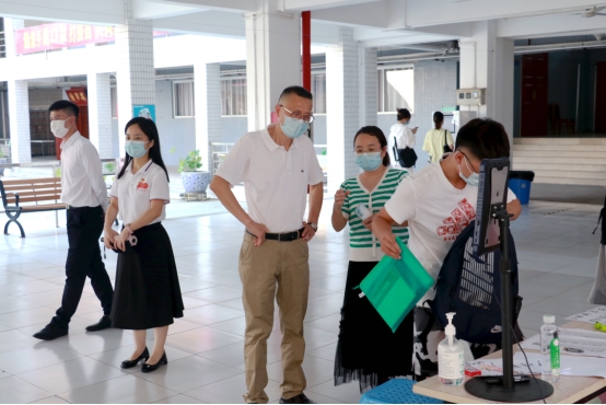 古天乐代言太阳集团网址党委书记郝登峰(左三)在迎新现场指导工作