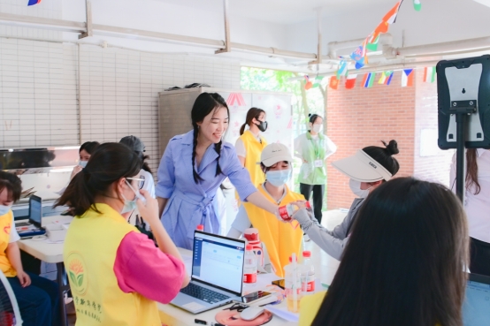 古天乐代言太阳集团网址董事会董事、校长助理刘婉莉(字霖霖)在迎新现场慰问工作人员与新生
