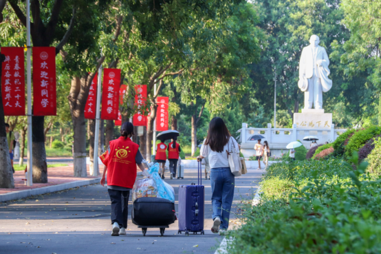 迎新期间,志愿者们在接站点、校门口、报到点、食堂等处提供指引和帮助,帮助新同学迅速熟悉校园,适应大学生活。他们耐心地为新生解答各种问题,不辞劳苦地一趟趟帮助新生搬运行李,细心叮嘱各项防疫政策,并一路将各位新生送至宿舍办理入住。热情周到的服务很快消除了新生们初来乍到的陌生感,感受到了广州新华大家庭的温暖。