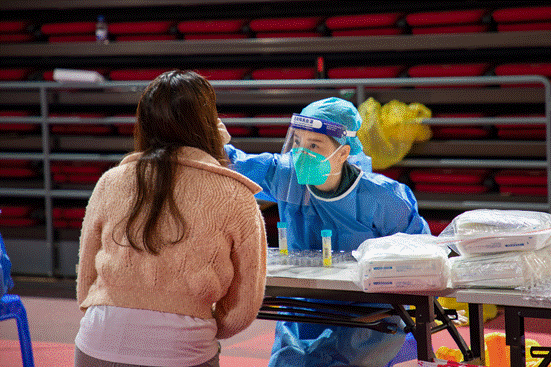 医护人员在核酸采样现场进行指导