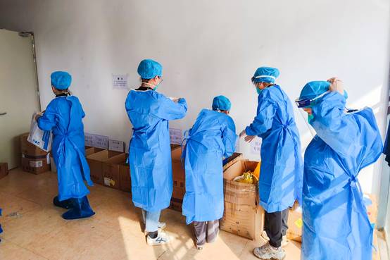 核酸检测开始前半个小时,教工志愿已到达现场,开始了准备工作。教工志愿者依次规范地穿戴个人防护用品,并在医护人员及志愿者的指引下,完成了个人及环境消杀、医疗物品准备、核酸信息核对等工作。