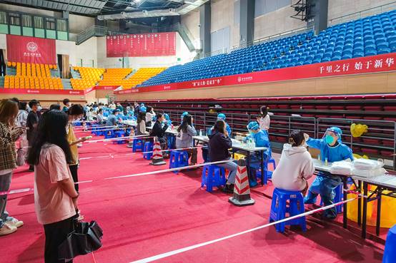 11月27日,36名教工志愿者正式参与学校全员核酸检测工作