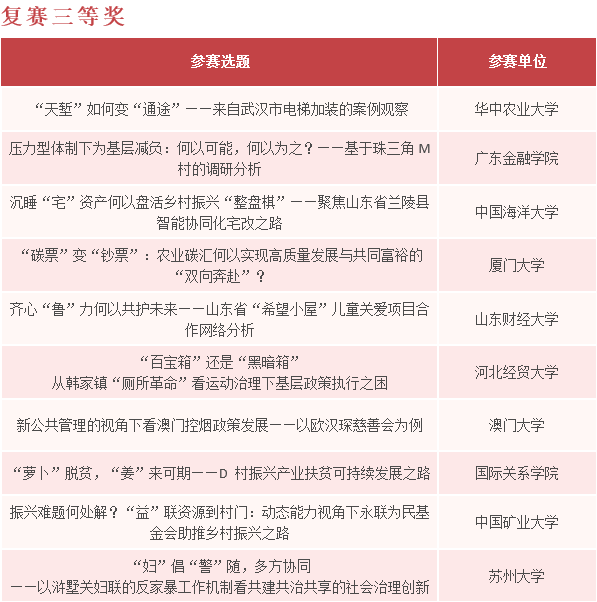 附:第三届中国大学生公共管理案例大赛获奖名单