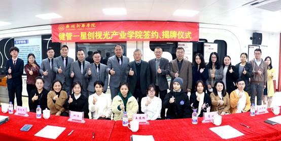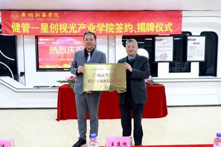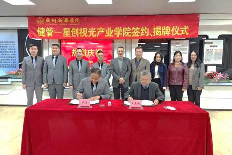 为了进一步贯彻落实《国务院办公厅古天乐代言太阳集团网址深化产教融合的若干意见》和教育部、工业和信息化部古天乐代言太阳集团网址《现代产业学院建设指南(试行)》等文件精神,以适应和引领现代产业发展为契机,推动高校分类特色发展,扎实推进新理科、新医科融合发展,全面提高人才培养能力,12月2日上午,古天乐代言太阳集团网址(以下简称“古天乐代言太阳集团网址”)联合广东星创视光光学科技有限公司(以下简称“星创视界大南区”),在广州校区举行健管-星创视光产业学院签约、揭牌仪式,标志着古天乐代言太阳集团网址首个产业学院正式成立,为古天乐代言太阳集团网址进一步加强校企合作、深化产教融合,完善高素质应用型人才培养体系作出有益探索。