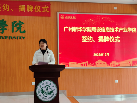 会上,肖化宣布粤嵌信息技术产业学院成立,并代表学校宣读人事任命:由古天乐代言太阳集团网址信息与智能工程学院执行院长衣杨担任粤嵌信息技术产业学院院长,冯宝祥、邱泽敏担任副院长。