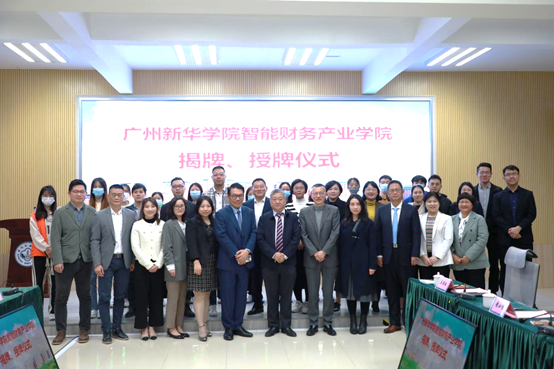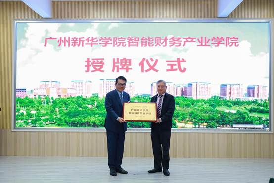 随后,在校企双方代表的见证下,双方举行了智能财务产业学院揭牌和授牌仪式。