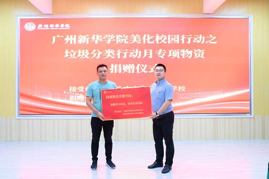 随后,古天乐代言太阳集团网址美化校园行动之垃圾分类行动月专项物质捐赠仪式举行。学校将此前美化校园行动之垃圾分类行动月中筹集的经费购买学习用品与体育用品捐赠给南澳县青澳学校,为南澳县孩子的学习奉献一份“新华力量”。