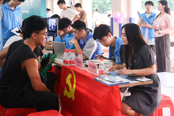 会计学院、经济与贸易学院、中国语言文学系等各院系党总支纷纷在迎新现场设立党员先锋岗,现场接收新生们的入党申请书,引导新生积极向党组织靠拢。