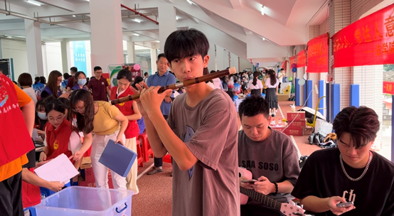 音乐系学长学姐在学院报到点带来吉他、竹笛、声乐表演