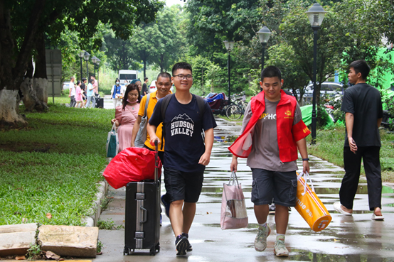 众多工作人员、志愿者奔走在迎新“第一线”,协助新生办理手续、解答疑惑、搬运行李、维护秩序,积极主动帮助新生解决问题,为新生提供便利、保驾护航。同时,学校还在高铁站、汽车站分别设置新生接待点,组织志愿者指引新生前往学校报到,打通迎新的“最后一里路”。