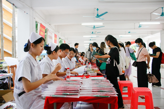 护理学院学长学姐身穿独具专业特色的护士服迎接新生