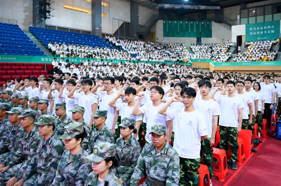 军训学员代表法学院张钰诚同学郑重承诺,将服从命令、听从指挥,刻苦学习、磨练意志,传承发扬、巩固成果,在军训中充分展现新华学子不怕苦、能吃苦、不畏难、战艰难的奋斗姿态,充分展现新时代、新青年的热血担当。