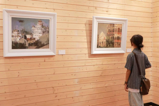 展览设有“山海行·中西交汇”“静思语·岁月无痕”“意无尽·境生万物”三个篇章,从山水、人文、意境的角度徐徐展开,吸引了众多师生前来观看、欣赏。宽敞明亮的展厅里,参展者或轻声交流,或驻足凝望。他们在此次展览中思考明德教育的真谛,获得美的启迪。