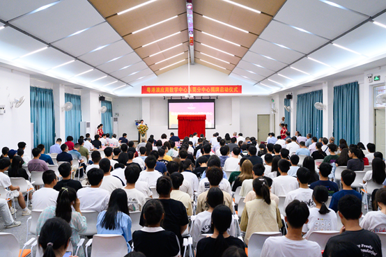 启动仪式上,陈庆松、刘荣海、郝登峰、姚正安、周文能、谢胜利、彭丹、谭忠、赵淦森、朱长江、王一举共同为粤港澳应用数学中心东莞分中心揭牌。