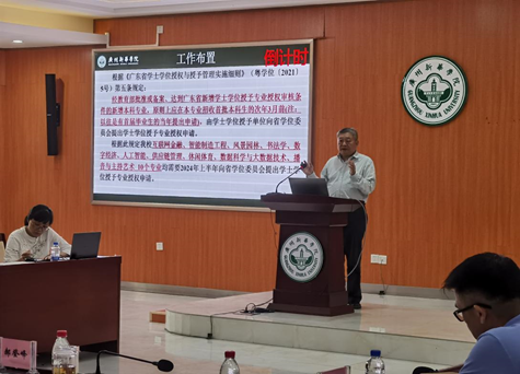 本次会议对互联网金融、智能制造工程、风景园林、书法学、数字经济、人工智能、供应链管理、休闲体育、数据科学与大数据技术、播音与主持艺术10个专业的学士学位授权审核工作进行布置。