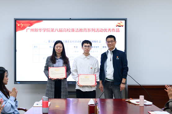 校纪委委员谢凯忠颁发第八届高校廉洁教育系列活动优秀创意设计作品奖