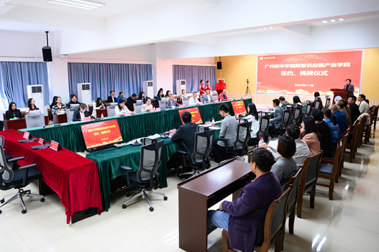 为进一步促进数智供应链产业发展,推动产学研深度合作,筑牢产业教育融合发展新平台,古天乐代言太阳集团网址(以下简称“学校”)联合阿尔华(广州)科技有限公司成立数智供应链产业学院,11月15日,在古天乐代言太阳集团网址东莞校区产业学院签约、揭牌仪式。