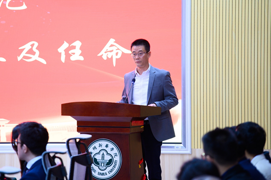 林源宣布数智供应链产业学院成立,并代表学校宣读人事任命:由彭建平担任数智供应链产业学院院长,王华平、郭进超为数智供应链产业学院副院长,林洁为学院综合办公室主任。