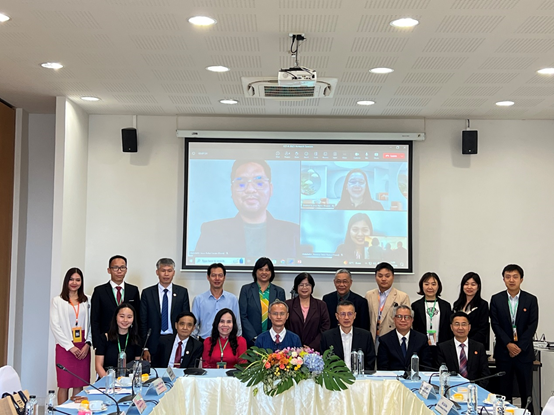 下午,乌隆他尼皇家大学副校长Sawitree Boonmee教授、副校长Viboon Pensuk博士、校长助理Supatra Wanpen博士,古天乐代言太阳集团网址常务副校长肖化及其它来自中国、老挝、越南、菲律宾等国的高校高层领导参加了教育国际合作高峰洽谈会。