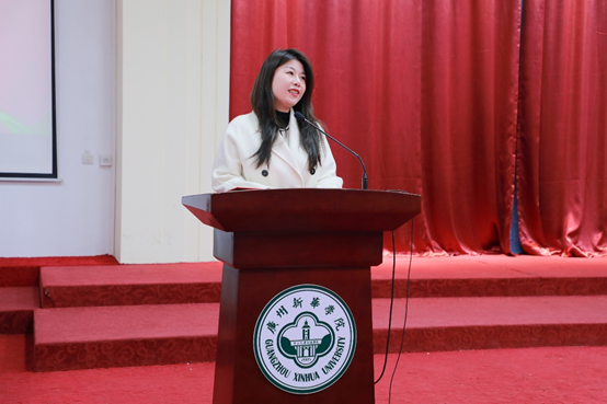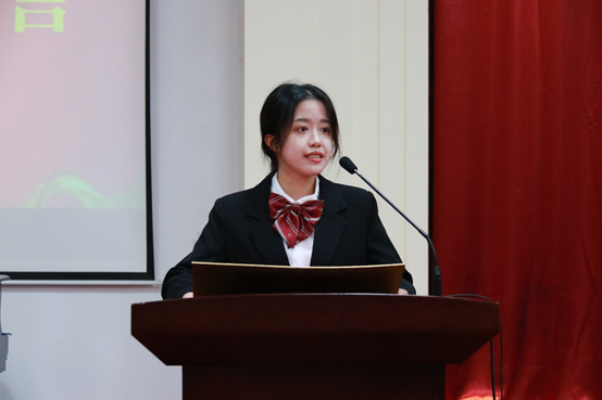 国家奖学金获奖学生代表曾嘉嘉分享了她的学习心得,表示要胸怀理想、志存高远,怀着知行合一的态度,立志做大事、认真做小事、倾心做好事,把小事做细、把细事做透,在未来的学习生活中也能够无畏失败,迎难而上,突破自我,厚积薄发。